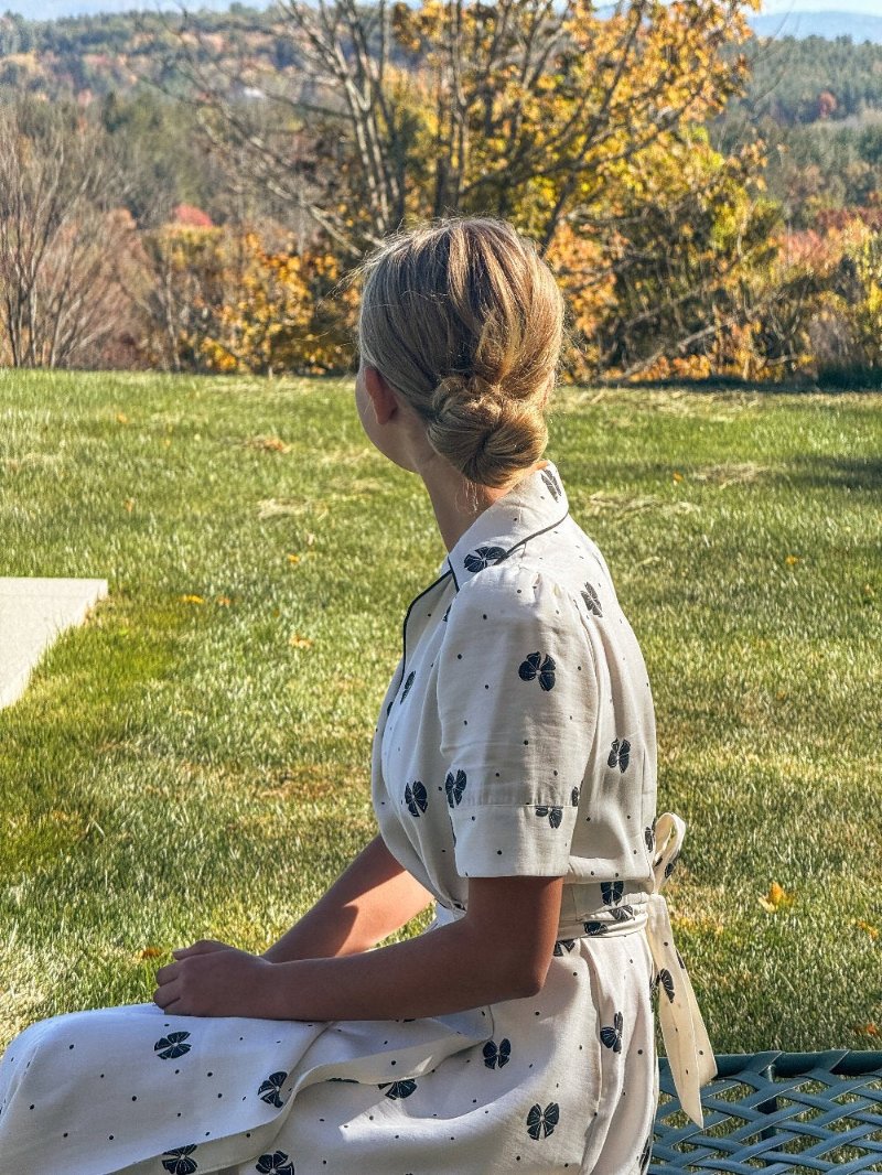 I loved throwing a sash around the waist of this one. It also looks stunning with a heeled boot or shoe. Play up it's vintage vibes with a neck or head scarf, or throw that wide leg pj pant on underneath for some chic lounge vibes.